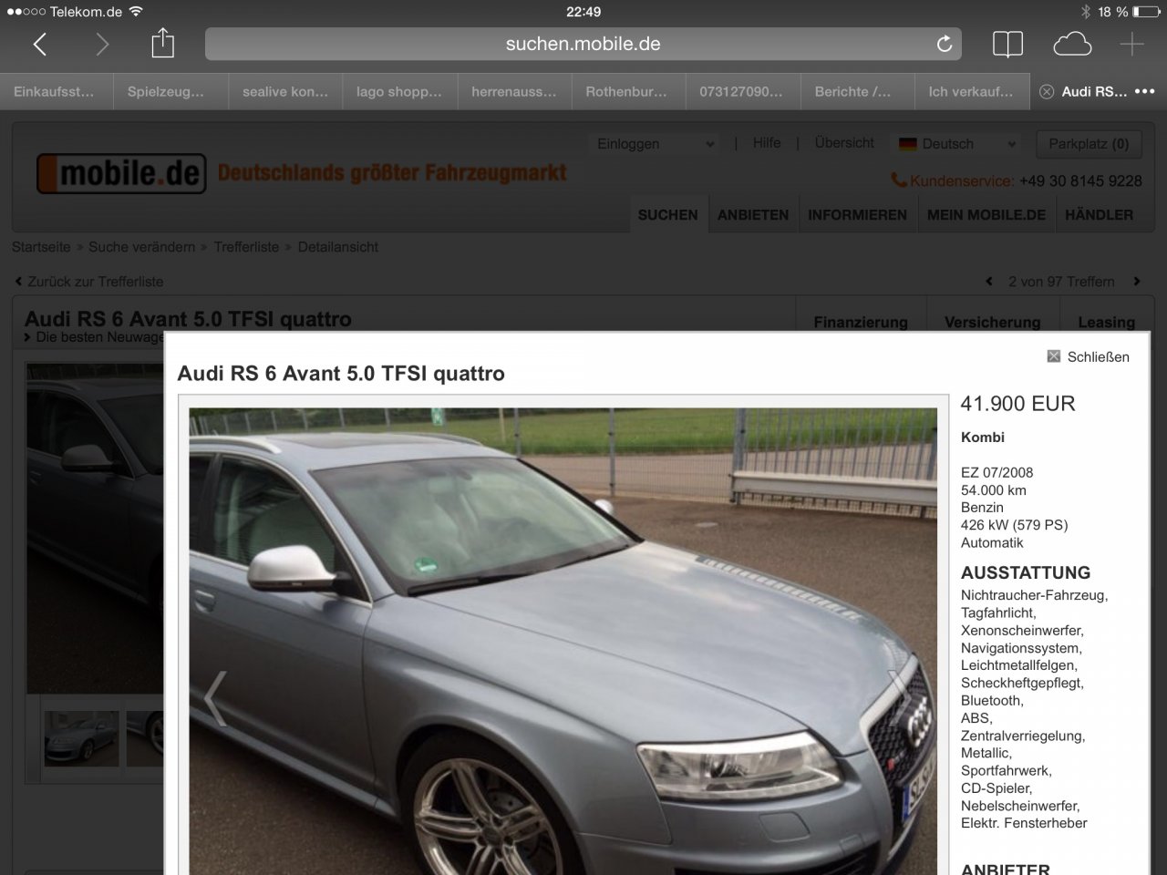 Verkaufe einen RS6 , Bj 07/2008, 54000km, unfallfrei.