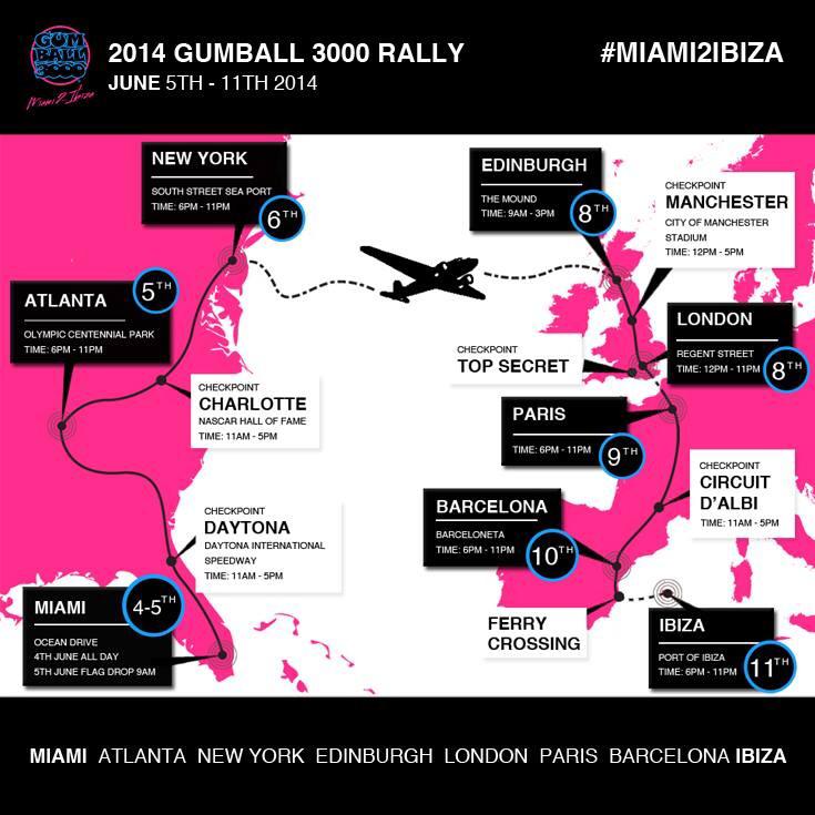 endlich ist es wieder soweit! heute abend beginnt die Gumball 3000 Rally (start morgen), diesmal gehts von Miami die ostküste rauf - rüber nach Schottland - und wieder richtung süden nach Ibizia.