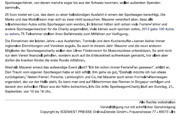 Heute in der Südwestpresse Ulm ein Vorbericht unserer Charity: