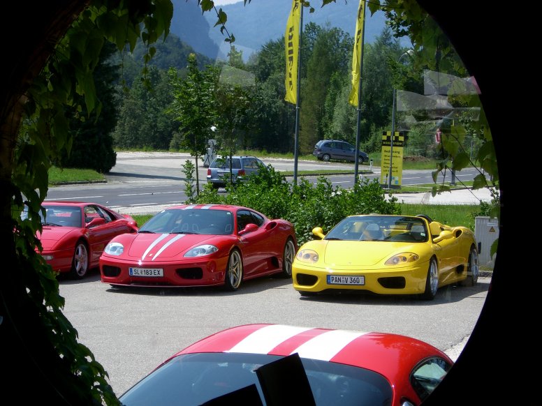 Wenn mich meine trüben Augen nicht täuschen, dann ist auf der Einladung vom FFH (Nemeth) zum Ferrari Treffen Aarberg, in dem dreiteiligen Flyer innen rechts oben ein 360 in dieser Farbe auf dem roten Teppich!