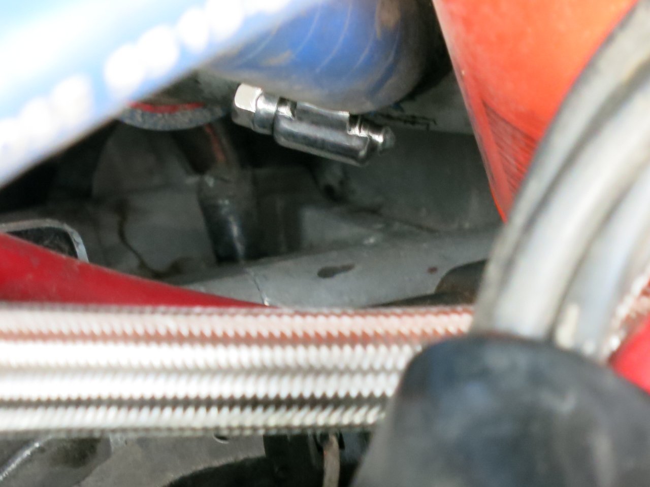The Sch...e: zw. Motor und Getriebe ölt es mal so richtig, hab mal ein paar Bilder gemacht, eins davon mit Pfeil ... k.a., was da Öl - technisch langläuft ...
