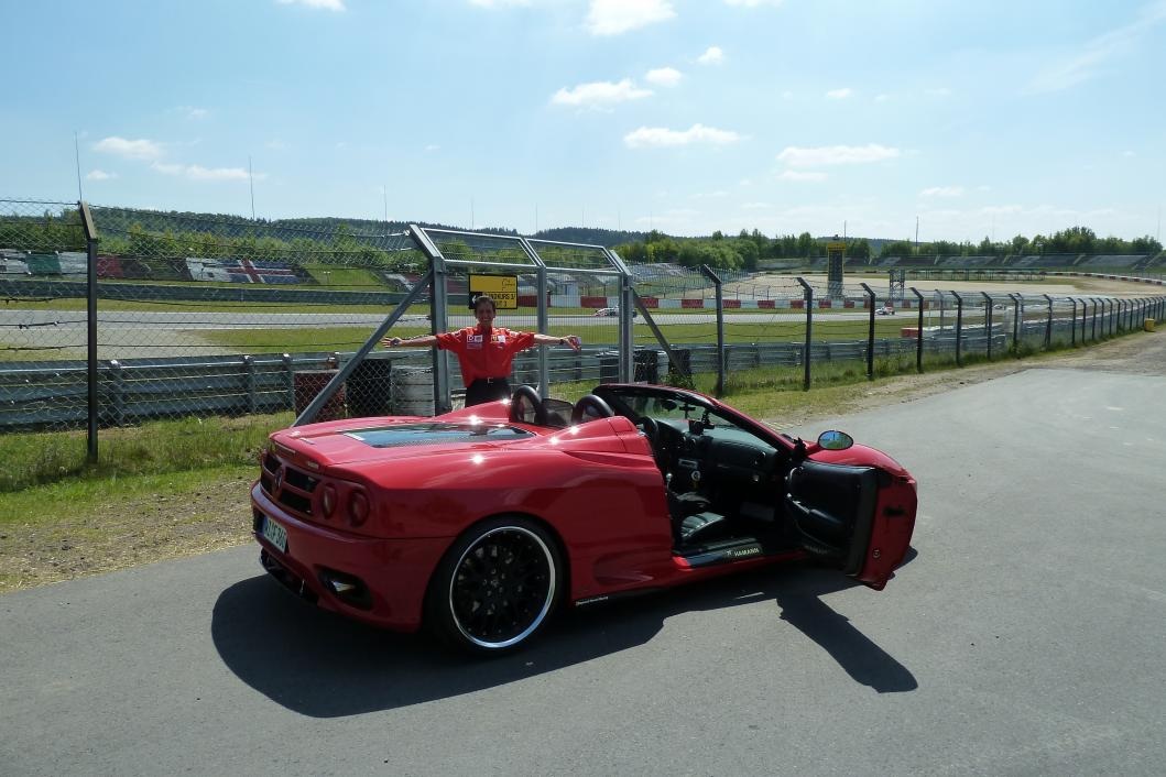 Der einzige Wagen der noch vernünftig läuft ist der F 360 Spider. Hihi