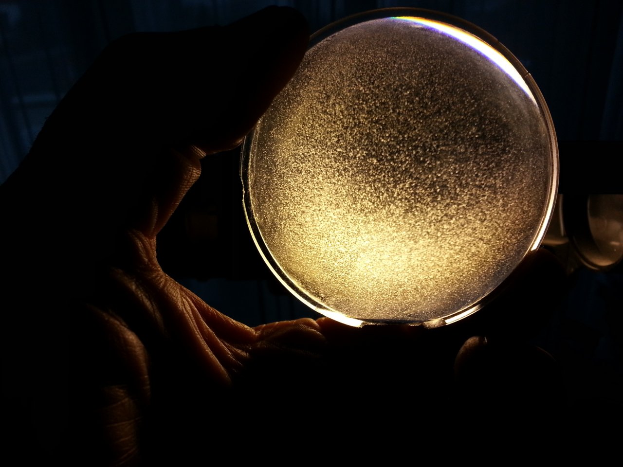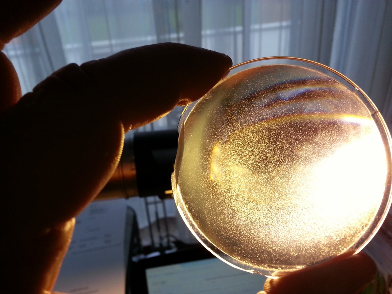 Der Optiker hat mir gesagt das man so eine Halbkugellinse nicht schleifen kann. Ausserdem macht das auch gar keinen Sinn, weil die Krümmung man nicht mehr hinbekommt und auch die restlichen Kratzer den Wirkungsgrad verschlechtern.