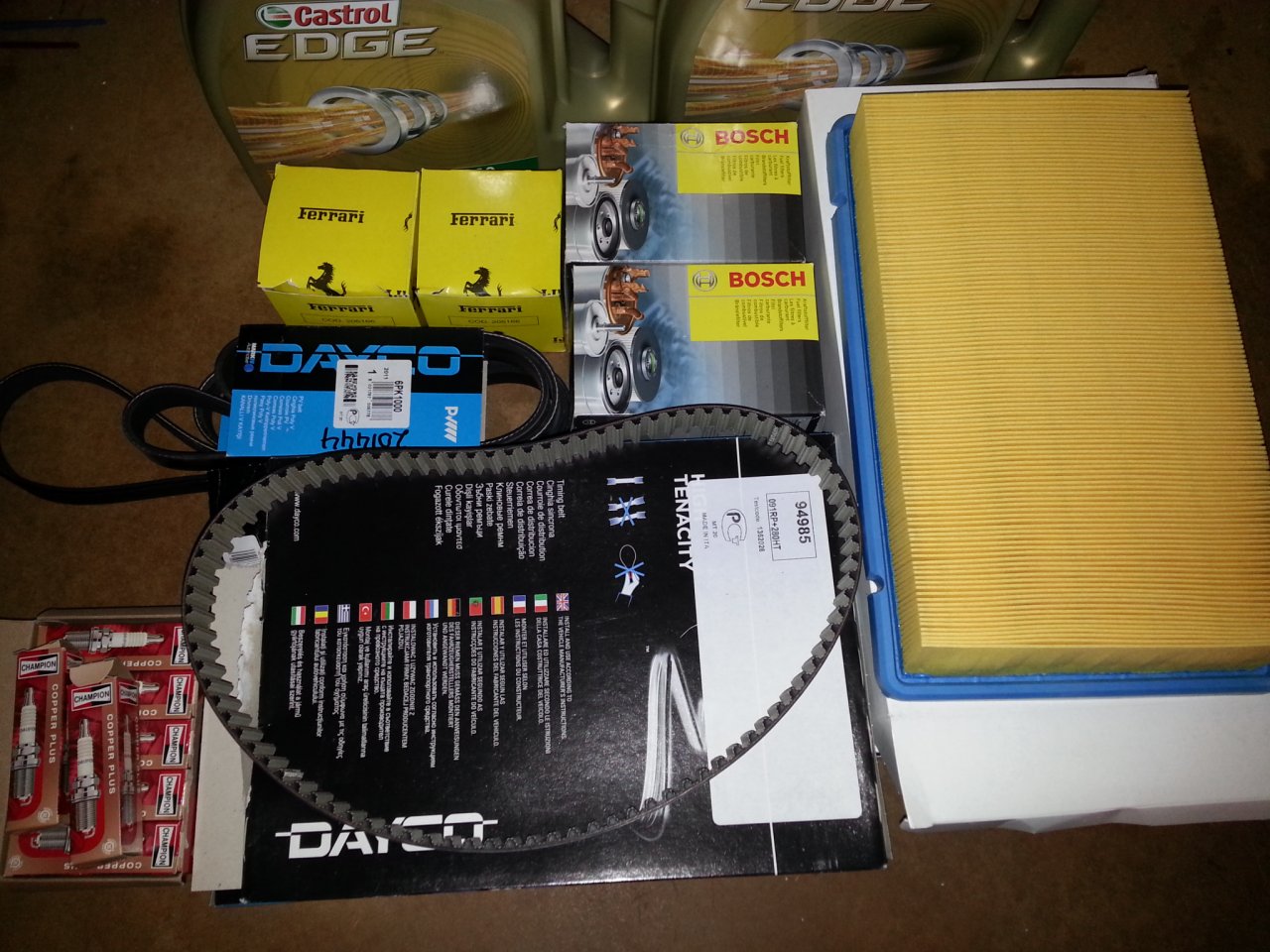 Die Teile von Eurospares sehen sehr gut aus. Die Riemen scheinen Original zu sein nur ohne Ferrari Schriftzug. Der Benzinfilter ist Original von Bosch.
