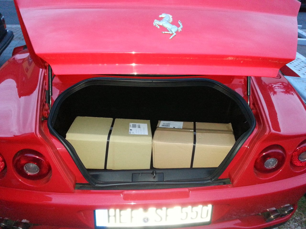 Auch der Maranello muss seinen Hafer, als Paket-Transporter, verdienen. Notfalls passen da 5 solcher Pakete rein!