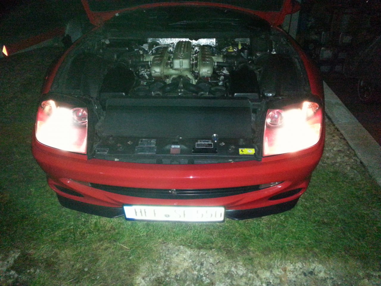 und beim zweiten Bild (Motorhaube offen) links(in Fahrtrichtung rechts) eine 100 Watt Birne und rechts(in Fahrtrichtung links) eine 55 Watt Birne. Man sieht fast keinen Unterschied. Die Linse schluckt fast alles. Nur werden die 100 Watt Birnen sehr viel heißer!