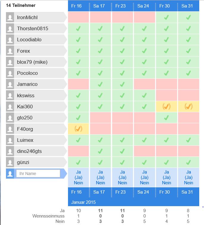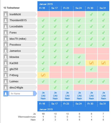 Ich bin leider raus. Freitag-Sonntag ist bei uns immer Hochbetrieb.:(