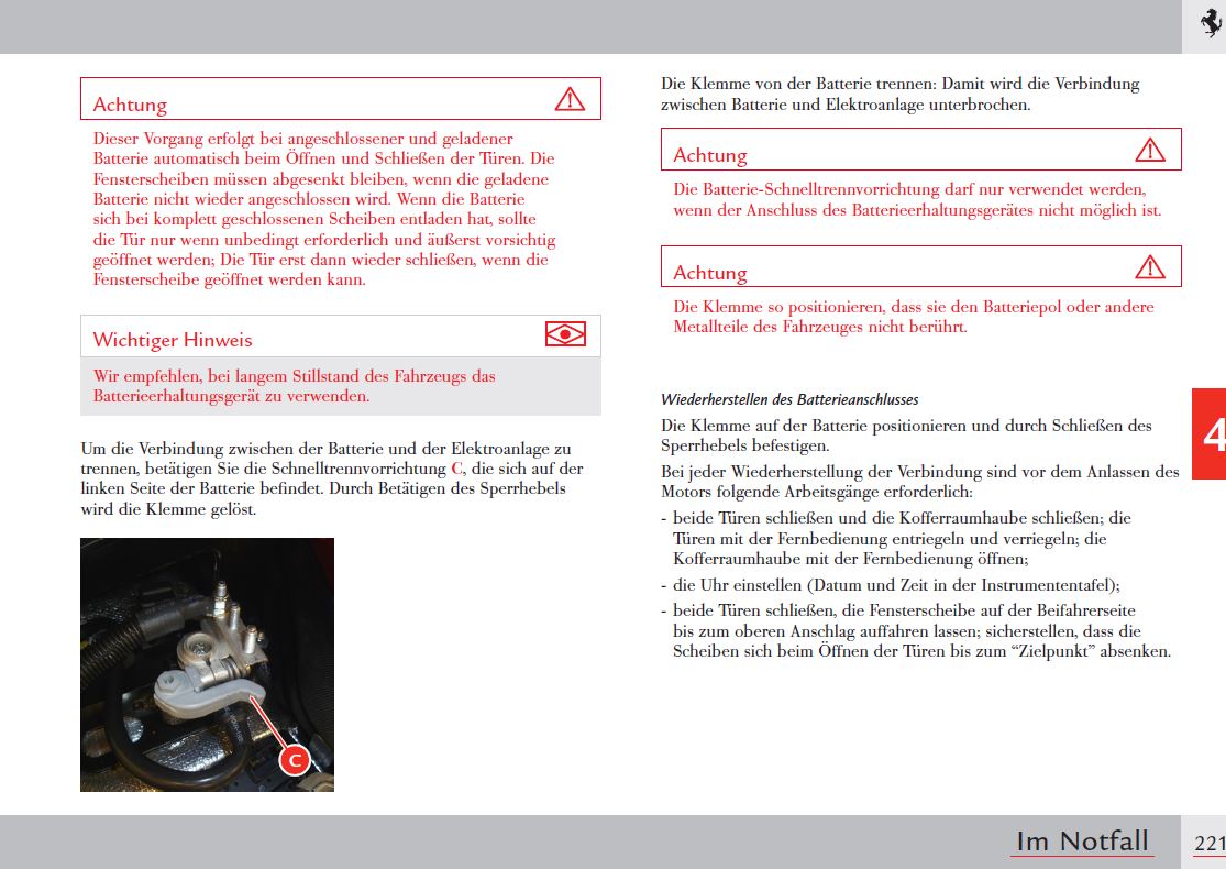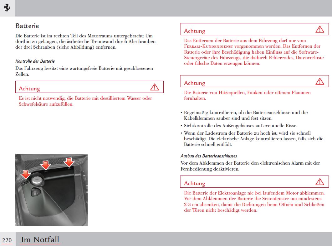 Starten beim Einwintern eines 360 Modena?