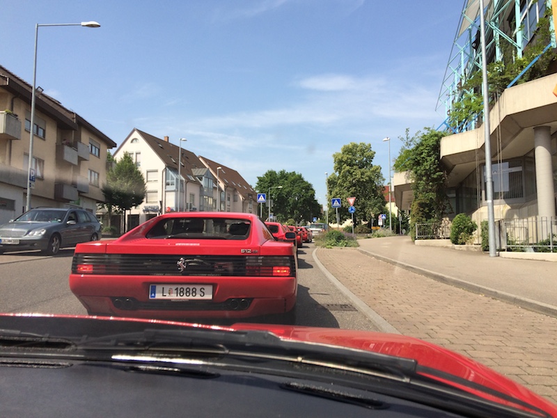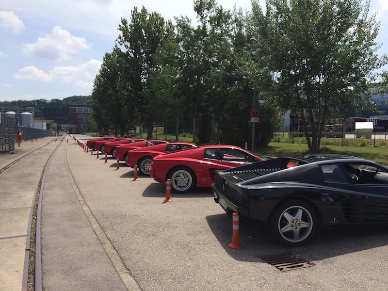 Danach ging es über das Enztal und Landstraße zur Motorworld nach Böblingen, wo weitere Testa’s und die Ferrarigruppe aus Dänemark bereits auf uns wartete.