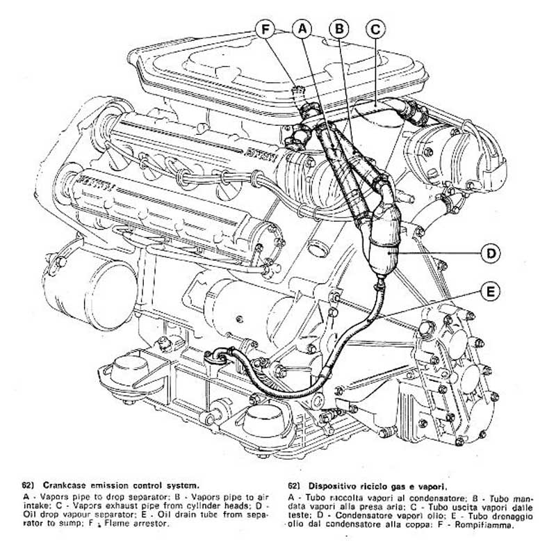 ab 1980 wurde die Getriebeöl-Entlüftung im Rahmen der US-Emissions-Vorschriften wie folgt geändert (s. Schlauch G) :