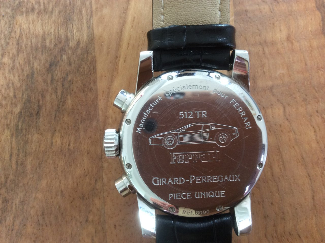 ich habe seit nun mehr 15 Jahren eine Uhr von Girard Perregaux die extra für den 512tr angefertigt wurde. (Einzelstück) Ich habe sie damals gekauft in der Hoffnung auch mal einen Testarossa zu fahren...leider wird das wohl nicht klappen. Vielleicht hat ja jemand aus den Forum Interesse an der Uhr? Ich habe mal zwei Bilder hochgeladen. Sollte ich hier völlig falsch sein, dann gebt mir Bescheid und ich lösche den Beitrag.