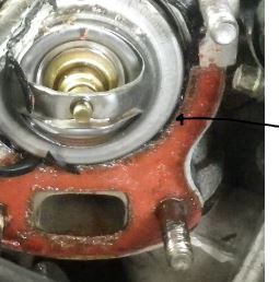 Habe mit Dichtmasse Curil (nicht Curil T) extrem wenig nur auf die Aluminiumdichtflächen aufgetragen. Keine Wurst, sondern nur wenige mm breit und mit Gummihandschuh flachgestrichen, also Höhe wenige Zehntel. An manchen Stellen gab es alte Kampfspuren und eine unruhige Stelle, die aussah wie eine Holzmaserung. Das habe ich mit 400er und 800er Schleifpapier nicht wegbekommen. Meist nehme ich das rote Dirko HT, aber das ist wohl bei Kühlmittelkontakt nicht optimal, geht aber besser wieder weg.