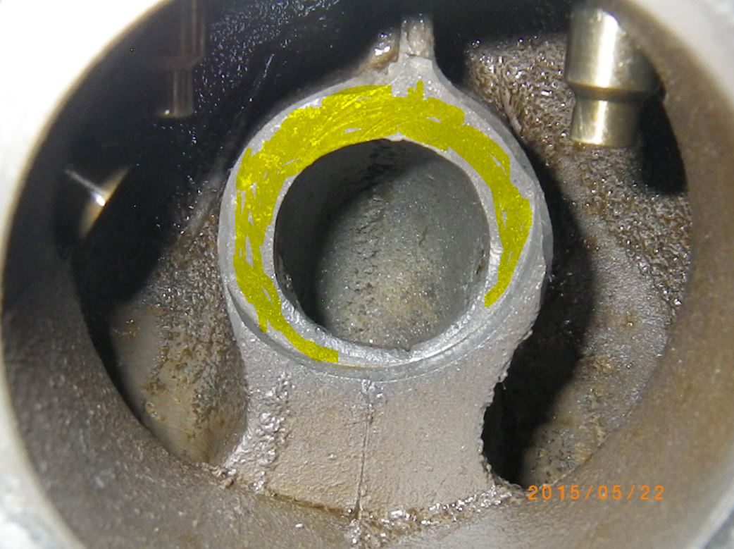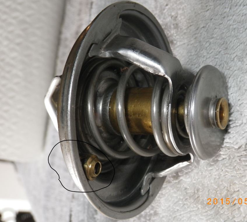 Das hier ist die Bohrung mit Wanderkugel im Thermostat bei 12 Uhr.