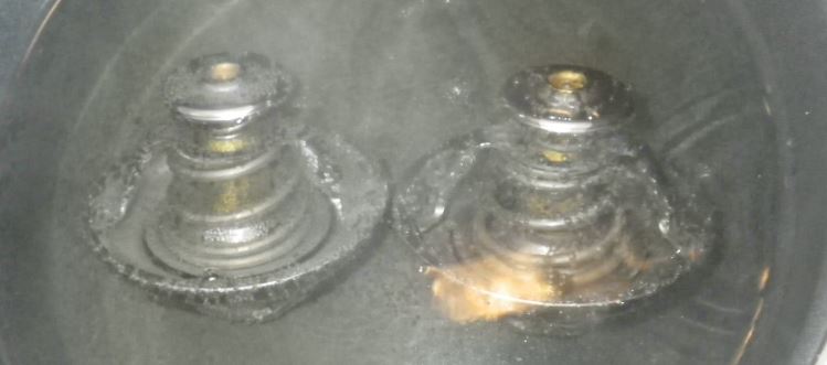habe also die beiden Thermostate "gekocht". Das bisher verbaute und das neue verhalten sich unterschiedlich. Für mich kurios: Bei beiden geht es bei ca. 80°C los.