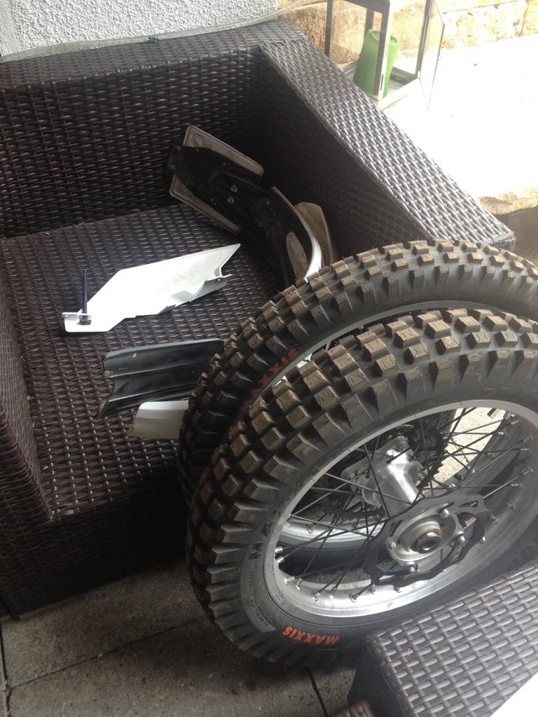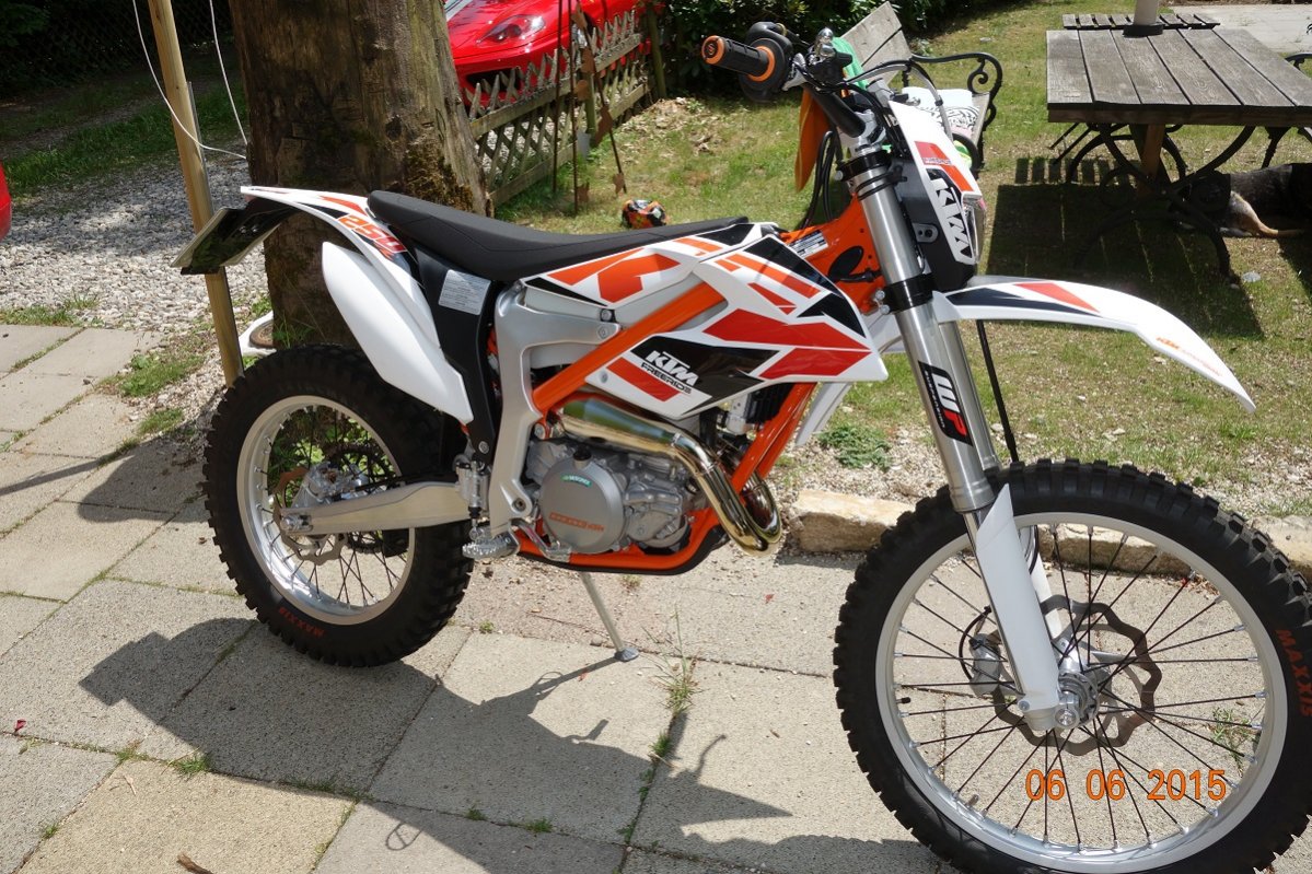 Vor unserem Pfingsturlaub in unserem Haus in Kärnten wuchs mal wieder die Lust auf ein Geländefähiges Moped mit Strassenzulassung. 2 Freunde hatten mir begeistert von der KTM Freeride 350 erzählt. Also spontan 2 tage vor dem Urlaub zu KTM Stuttgart und zugeschlagen. Allerdings nicht die 4-Takt 350 sondern den leistungstärkeren 2-Takter. Vorab nur mal kurz vermessen, da ich Fahrten mit dem Hänger hasse:evil::evil:.