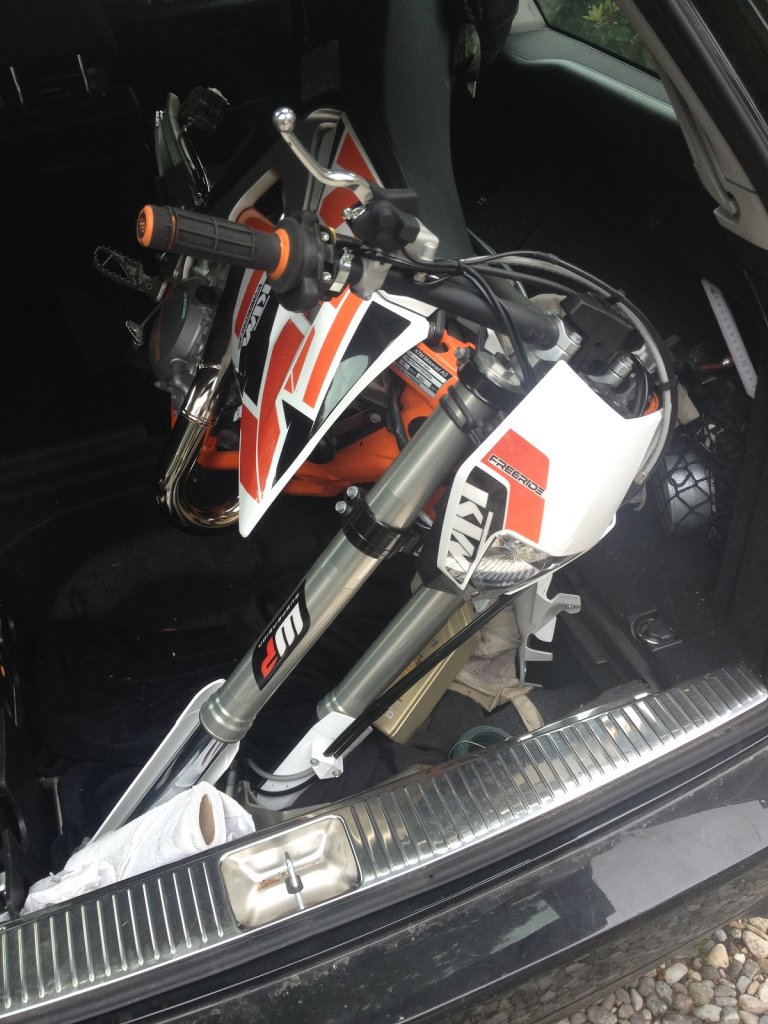 Das ist das Problem, Uwe. Von der Größe her passen auch "Fette Bikes" rein. Die KTM ist durch ihre Höhe und die lange Gabel eigentlich eher "groß".