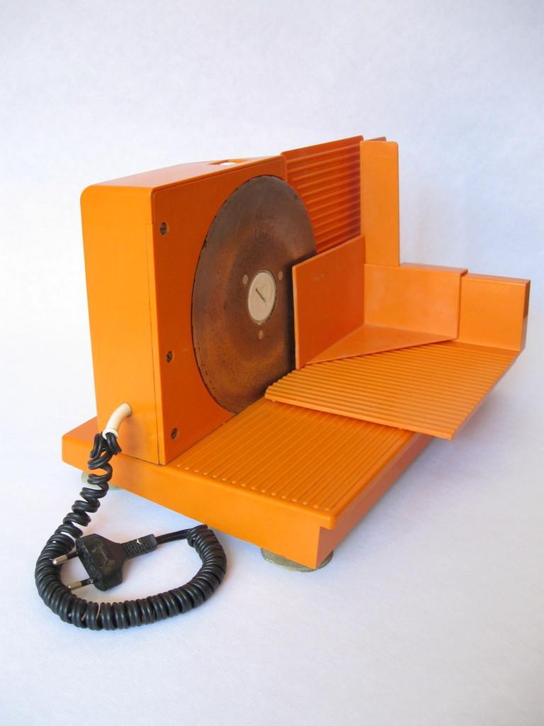 Am Messer und dem typischen Wellenschliff erkennt der Fachmann eine Brotschneidemaschine sofort, auch wenn die Farbe des Plastikgehäuse doch sehr ablenkt. :D