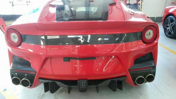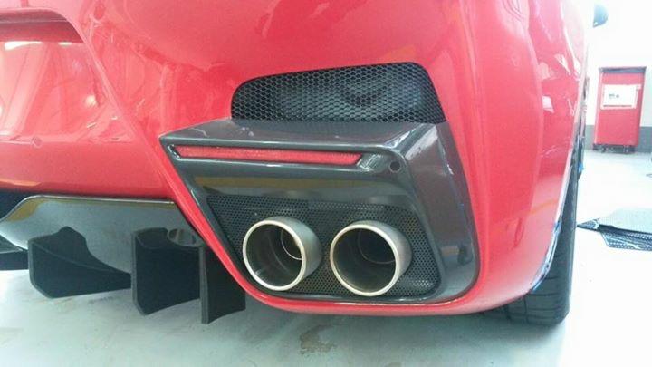 Klar, dass normale F12 Heck ist nicht jedermanns Sache, aber der original F12 Auspuff wirkt deutlich homogener ins Karosseriedesign integriert.
