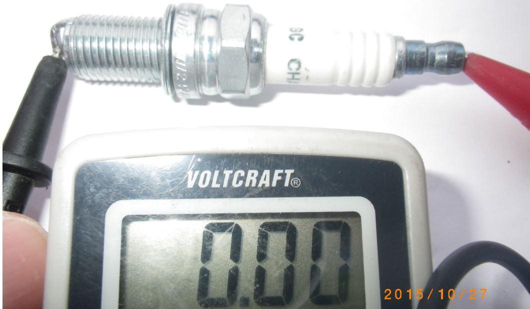 Für mich überraschend: Gleich die erste Kerze hatte "unendlich". Deshalb habe ich alle durchgemessen. Die meisten waren 0 Ohm. Aber einige waren "unendlich", auch nach wiederholtem Messen und deutlichem Einsatz der Messspitze.