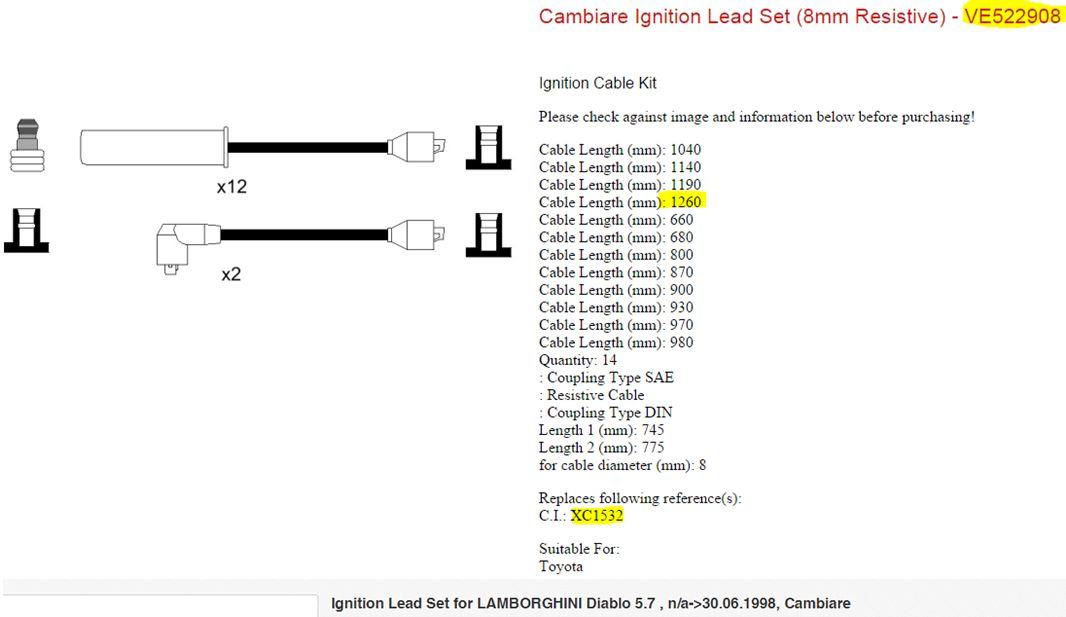 nun ein paar Infos zu Ersatz-Zündkabeln. In dem anderen Beitrag 'Diablo Ursache für "Lambda sensor detected weak fuel mixture"' habe ich gleich am Anfang nachgefragt, ob jemand eine Quelle kennt, da ich ein Kabel am Zündkerzenstecker rausgerissen habe. Geflickt und funktionierte.