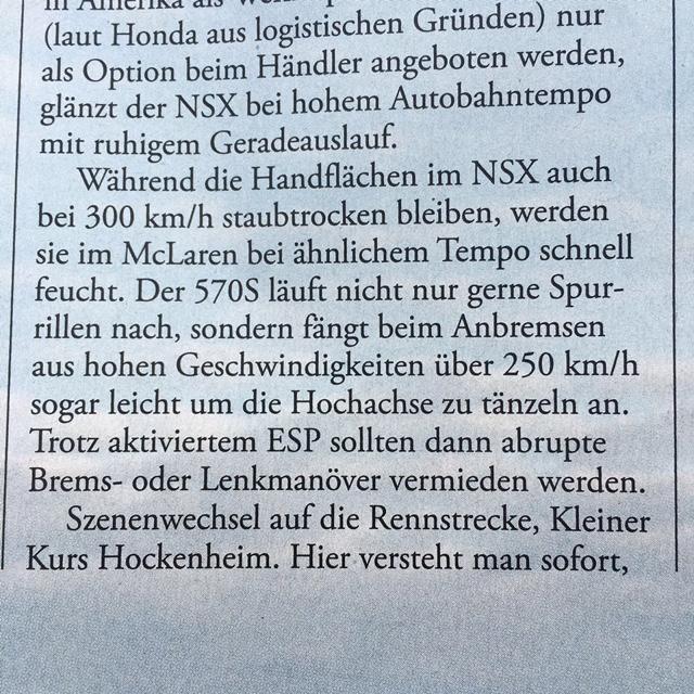 Interessant fand ich nun, dass dem Magazin sportauto anlässlich des Vergleichstests mit dem neuen Honda NSX genau dieses Problem des 570 auch aufgefallen ist.