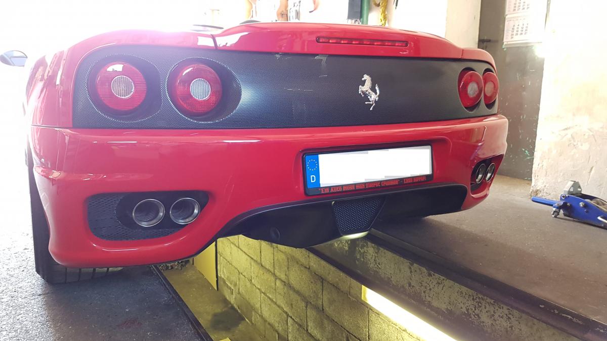 Ich war heute beim Mario Engelhardt da ich mich wieder zu einer Änderung am Auspuff entschieden habe. Warum? Naja ich wollte ja immer den hohen F1 Sound und hatte die Capristo 1/3 verbauen lassen mit 200 Zellen Sportkats. Das war auch fantastisch, aber nach einem Jahr hatte ich eine Dummheit im Kopf. Ich wollte versuchen was das Ende der Fahnenstange darstellt und habe dann dieses Jahr im März noch Katersatzrohre verbauen lassen. Das kann ich ja jetzt öffentlich schreiben, da sie nicht mehr drin sind. :D Der Sound mit Katersatzrohren war fantastisch, nur das es auch mit geschlossenen Klappen nicht mehr total unauffällig war, es ziemlich gestunken hat und natürlich auch die MKL geleuchtet hatte. War eigentlich fast vorher klar, aber ich musste es einfach versuchen um eigene Erfahrungen zu machen. Besonders störend war der Gestank. Am schlimmsten war aber für mich, dass ich nicht mehr mit Freude fahren konnte. Der Sound war toll, aber ich bin irgendwie nicht der Typ dafür. Immer der Blick in den Spiegel oder die Umgebung, ob nicht doch irgendwo die Rennleitung lauert. Den Rest gegeben hat mir dann eine Ausfahrt mit 4 anderen Ferrari, als wir gleich 3x Kontakt mit der Polizei hatten und auch durch eine große Kontrolle gekommen sind. Wir wurden zwar durch gewunken, aber der Puls war doch stark erhöht. Ab diesem Tag war klar: Ich kann so kein Spaß haben auf Dauer, auch wenn der Sound toll war.
