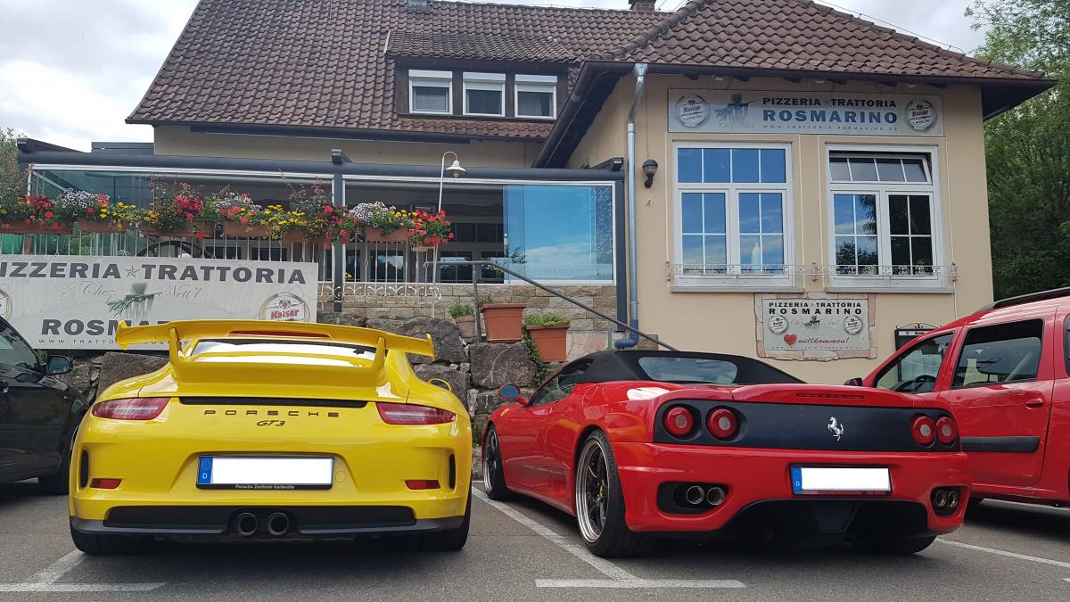 Spontan sind wir dann nach Sillenbuch bei dem heißen Wetter noch ein Eis essen gegangen und haben somit das Klischee erfüllt. So haben wir die Parkplätze direkt davor nicht ausgeschlagen. :D Wir hatten schon anfangs den Plan noch unseren Stammitaliener in Bad Ditzenbach abends zu besuchen und dort den Abend ausklingen zu lassen. Schnell war aber beschlossen nicht nur über die Autobahn zu fahren sondern die Route durch einige extrem spannende Straßen bei Wiesensteig zu ergänzen.