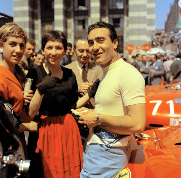Ein Lebemann, bereits mit Anfang 20 certified owner eines eigenen Ferraris, Gewinner der 12 Stunden von Messina, der Mille Miglia , der 1000 km von Buenos Aires....