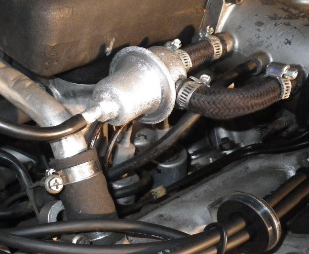 Das ist eigentlich keine echte Falschluft, da sie im Luftfilterkasten mündet und damit außer Ölnebel wie ganz normale Außenluft reinkommt. Hier ersetzte ich zwar die Schläuche B usw. , der alt aussieht aber dicht ist, werde damit aber keinen Fortschritt machen können.