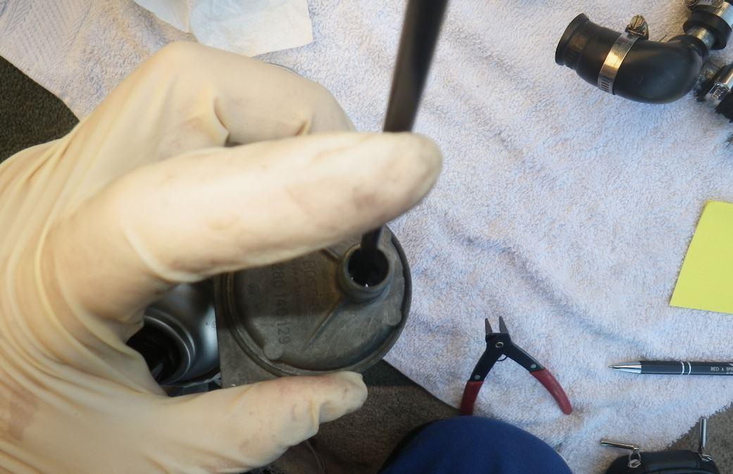 Den Ölabscheider D wollte ich auch mal reinigen, ich weiß aber nicht, wie der innen aussieht. Ich hätte ihn gern z.B. mit Bremsenreiniger geflutet und einen Tag trocknen lassen.