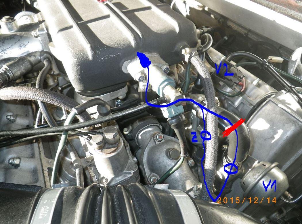 (das Elektroventil an dem jetzt noch beide Leitungen hängen kann so eh nicht funktionieren - vermutlich handelt es sich dabei um ein Überbleibsel der Abgasrückführung EGR bzw. der Zusatzluftpumpe, die ja aus Deinem Fahrzeug schon entfernt wurde)