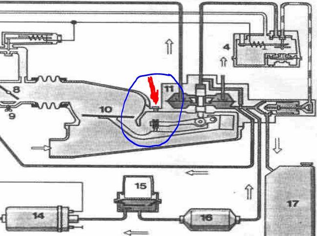 Der Entlüftungsschlauch B in Michaels Bild geht bei mir unten in den Luftfilterkasten, was technisch Sinn macht und damit ok. Der Anschluß am Luftfilterkasten ist ein Lufteingang, der am Mengenteiler ist ein Luftausgang zum Zusatzluftschieber Z.