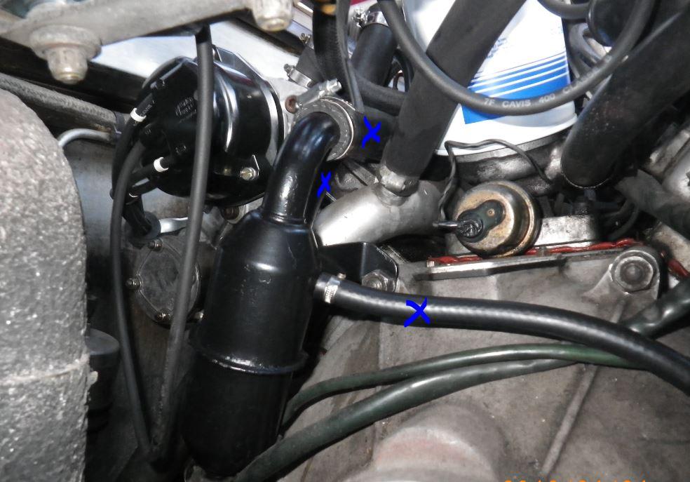 • Alle Schläuche kosmetikhalber erneuert (blaue Kreuze), obwohl alle dicht waren und alle Durchgang hatten: