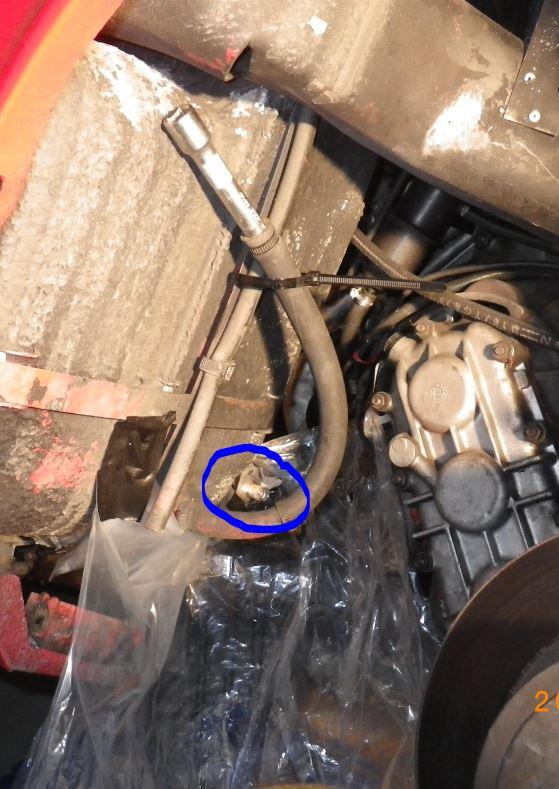 Hatte noch viel Benzin im Tank. Habe das Benzin aber nicht an der Ablassschraube im Tankverbindungsrohr abgelassen. Sondern nur die linke Wagenseite ganz weit hoch genommen und über den Radkasten gearbeitet. Dann sogar ohne den Schlauch abzuklemmen nur abgezogen und sofort hoch gebunden. Bei dieser Aktion nur halber Liter Benzin über eine Folie in einen Eimer. Dabei kein Tropfen Benzin auf den Boden.