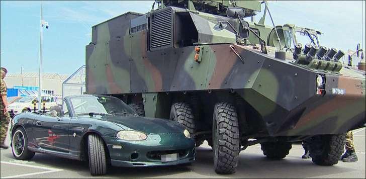 Ohne das "coole Bodykit" wäre der kleine ja einfach zwischen den Rädern des Panzers durch gefahren. :D