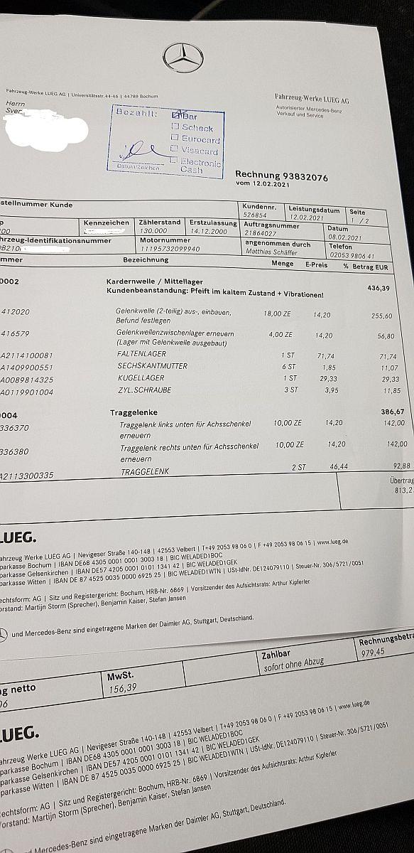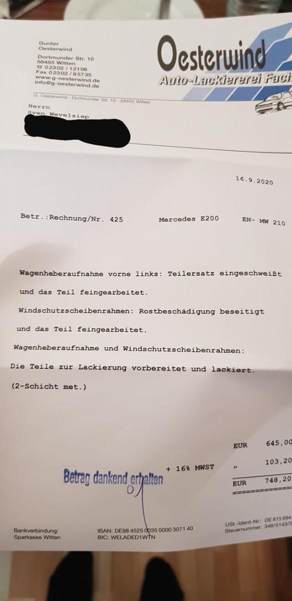 wevi85 Geschrieben 22. April 2020 Autor Geschrieben 22. April 2020 Grüße zurück ✌️ Hab mir soviele Autos angeschaut und bin sie probe gefahren aber war nicht das selbe wie im guten alten 210er Bin gestern 140km gefahren und es einfach ein Gedicht, man steigt ein, spult die Kilometer ab und steigt komplett erholt wieder aus. Ausstattung hat der Wagen jetzt auch schon etwas mehr wie mein letzter 210er, wobei ich es lieber mag wenn Fahrzeuge sogut wie nix drin haben. Dafür ist an dem Wagen sehr viel neu gemacht: Neue Allwetterreifen Klimaanlage ist neu Die Hinterachse ist komplett samt allen Streben neu gelagert + Achsvermessung Hardyscheibe vorne hinten + Mittellager neu original Mercedes Bremse vorne + hinten neu Antenne neu Xenonbrenner neu Vorderachse wurde bei 90tkm komplett neu gemacht, Querlenker, Spurstangenköpfe, Stabigummis, Dämpfer, Federn, Koppelstangen usw. usw. Hab einen ganzen Ordner dabei, fast alle Tüv Berichte, erster Brief, sogar Scheckheft Bin auf jeden Fall zufrieden, ich bete die ganze Zeit, dass mir da keiner reinfährt, dann flipp ich aus 3