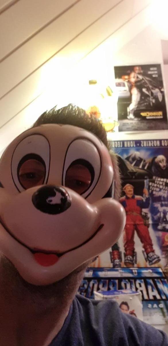 Hatte in einem Karton eine alte Maske gefunden und damit runter zu meiner Frau, die gerade auf der Couch am Dusseln war.
