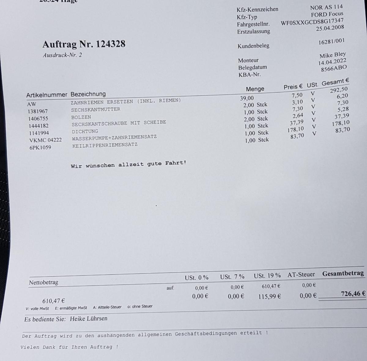 In der letzten Werkstatt standen 4 Mechaniker davor, waren am prüfen und haben mit den Schultern gezuckt.