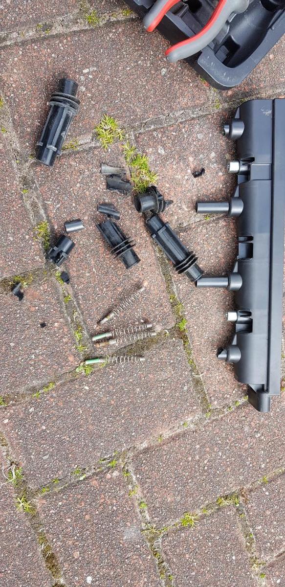 Hatte ja mal aus dem Zubehör neue Kontaktstifte und Gummiabdichtungen geholt aber die Geschichte kann man vergessen. Die Gummidichtungen vertragen die Hitze nicht und waren jetzt komplett festgebacken.