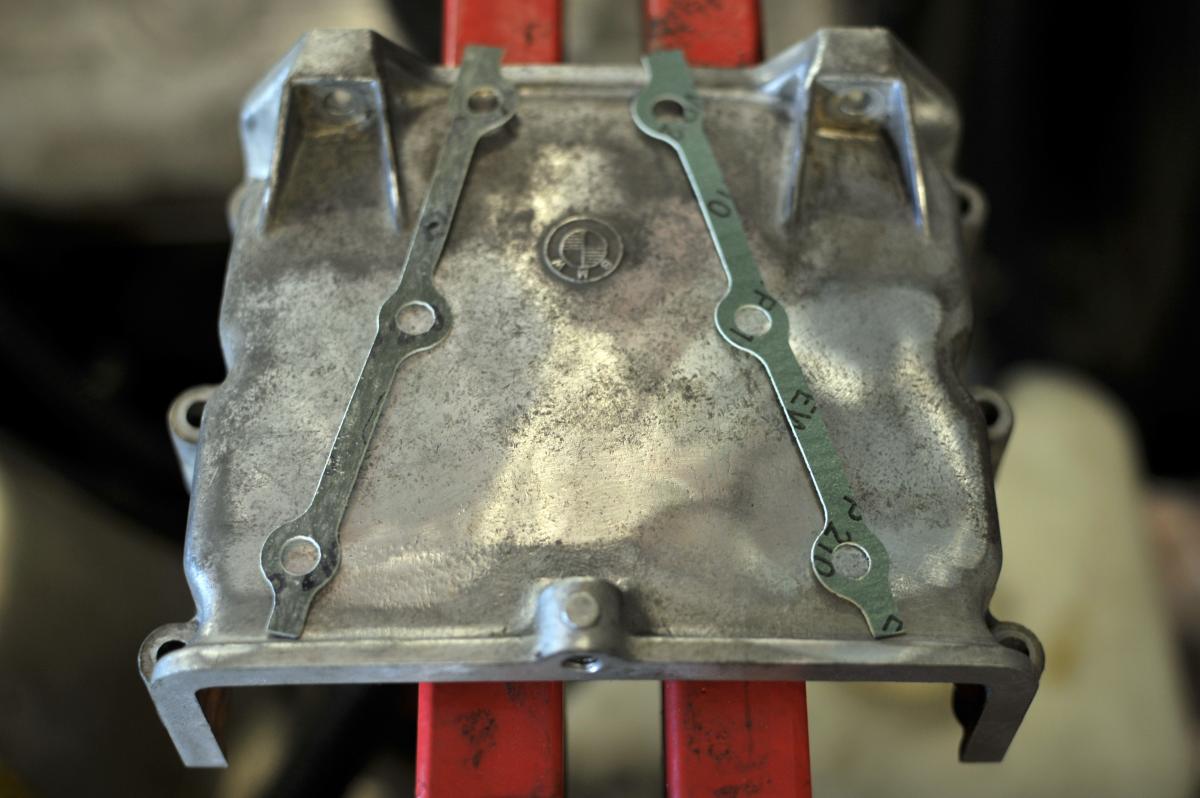 Ein weiterer Ölverwender ist der Kettenkasten. Der ist rückseitig mit Papierdichtungen abgedichtet, davon war nicht mehr viel da. Ein neuer Wellendichtring wurde auch noch eingepresst.