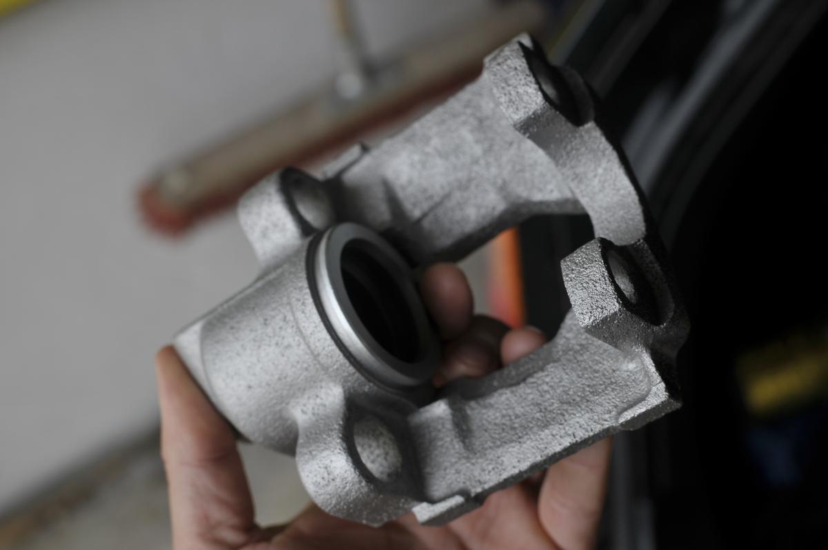 Beim E30 gab es zwei Bremsenhersteller, Girling und ATE. Meiner hat(te) leider ab Werk die Girling Bremse drin. Der Nachteil der Girling ist die Lagerung des Sattels. Der Sattel ist im Sattelhalter mit zwei schwimmenden Stiften fixiert, deren Buchsen irgendwann mal auschlagen. Dann klappert der Sattel und das Pedalgefühl wird schwammig. Dann bleibt nur noch der Austausch der Sattelhalter, allerdings kostet da einer 280€. Nein Danke! Dann lieber gleich auf ATE umrüsten.