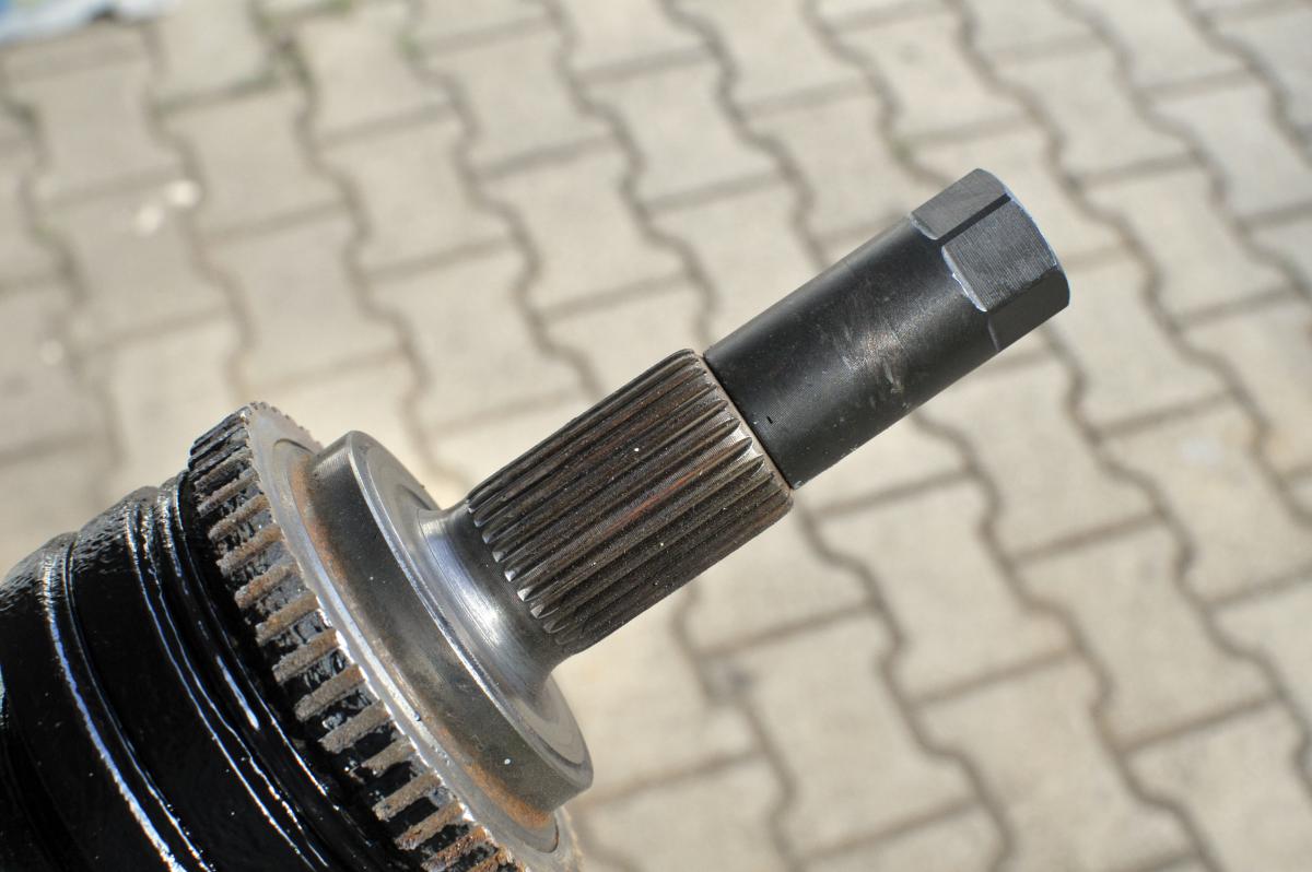 Und dann zieht man Radnabe und Antriebswelle über eine Spindel zusammen.