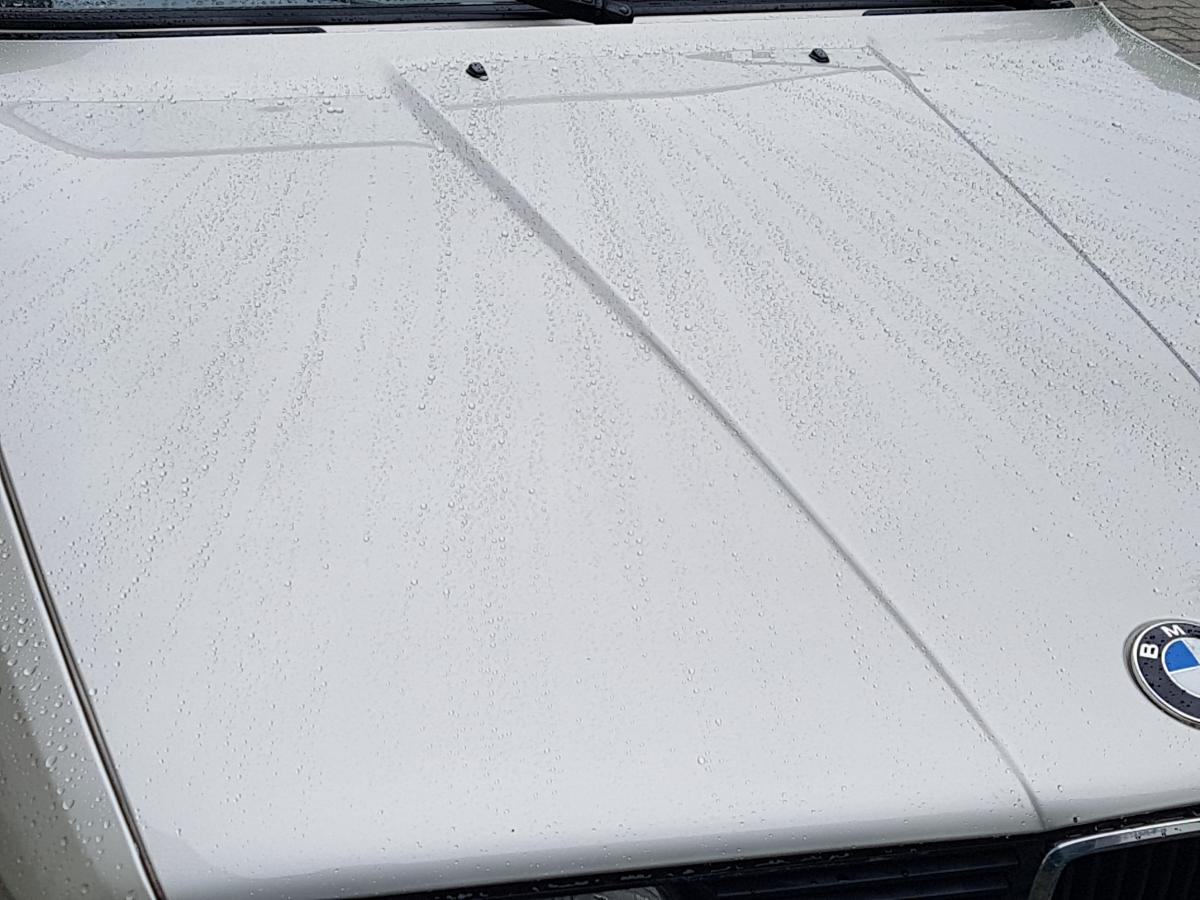 Wie auf der Haube sieht man hier am Heckdeckel wie schön sich bei Regen (der zwischendurch immer wieder mal kam) die dicken Wasserperlen bilden.