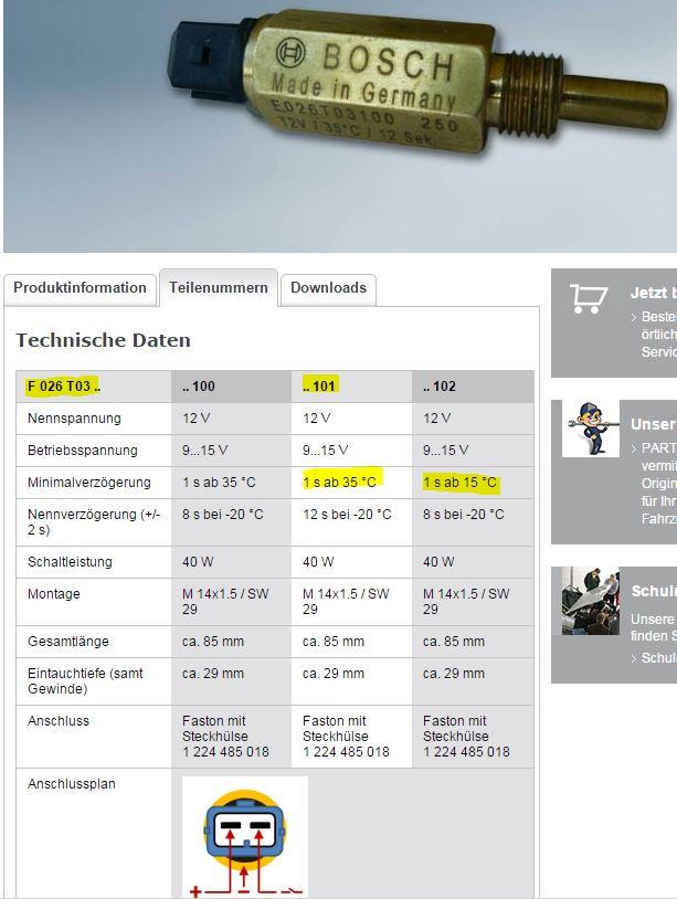 nun doch Thermozeitschalter BOSCH F 026 T03 101 bestellt. Werde dann berichten.