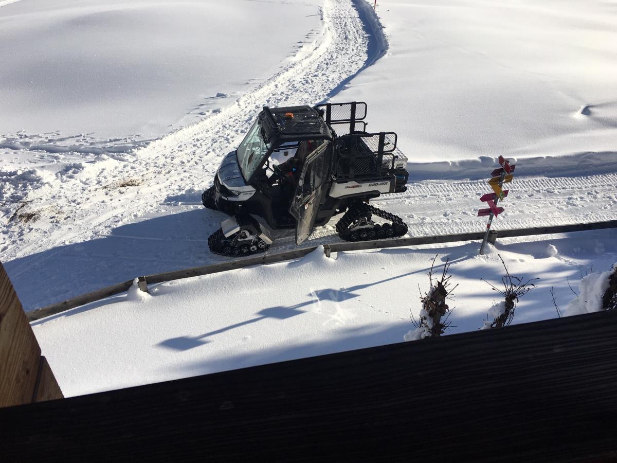ein komisches kleines Raupenfahrzeug von meinem Nachbarn, sowas wie ein Quad mit Kabine und Raupen. Wozu er das braucht weiss keiner aber er fährt im Winter ständig damit rum und scheint Spass zu haben😂