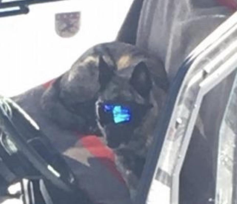 Hat der Hund eine Sonnenbrille an oder täuschen mich meine Augen?😝