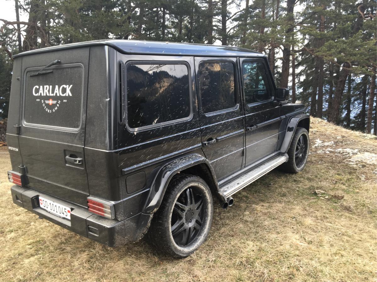 Der 6x6 hat das serienmäßig in matt (nennt sich analog mit dem Lack "magno"), analog zu den matten Kotflügelverbreiterungen. Beim G 500 4x4 sind beide Bauteile in Sichtkarbon glänzend.