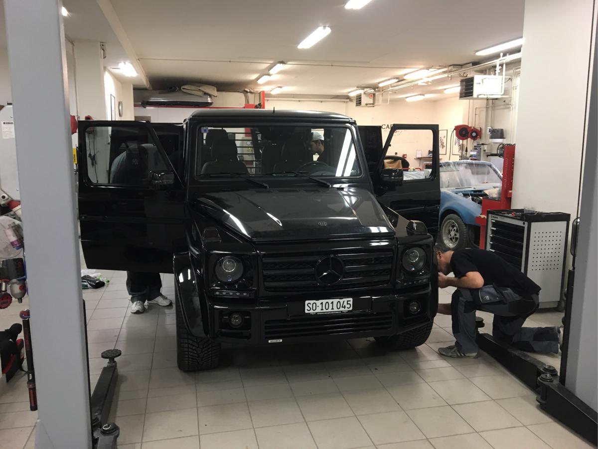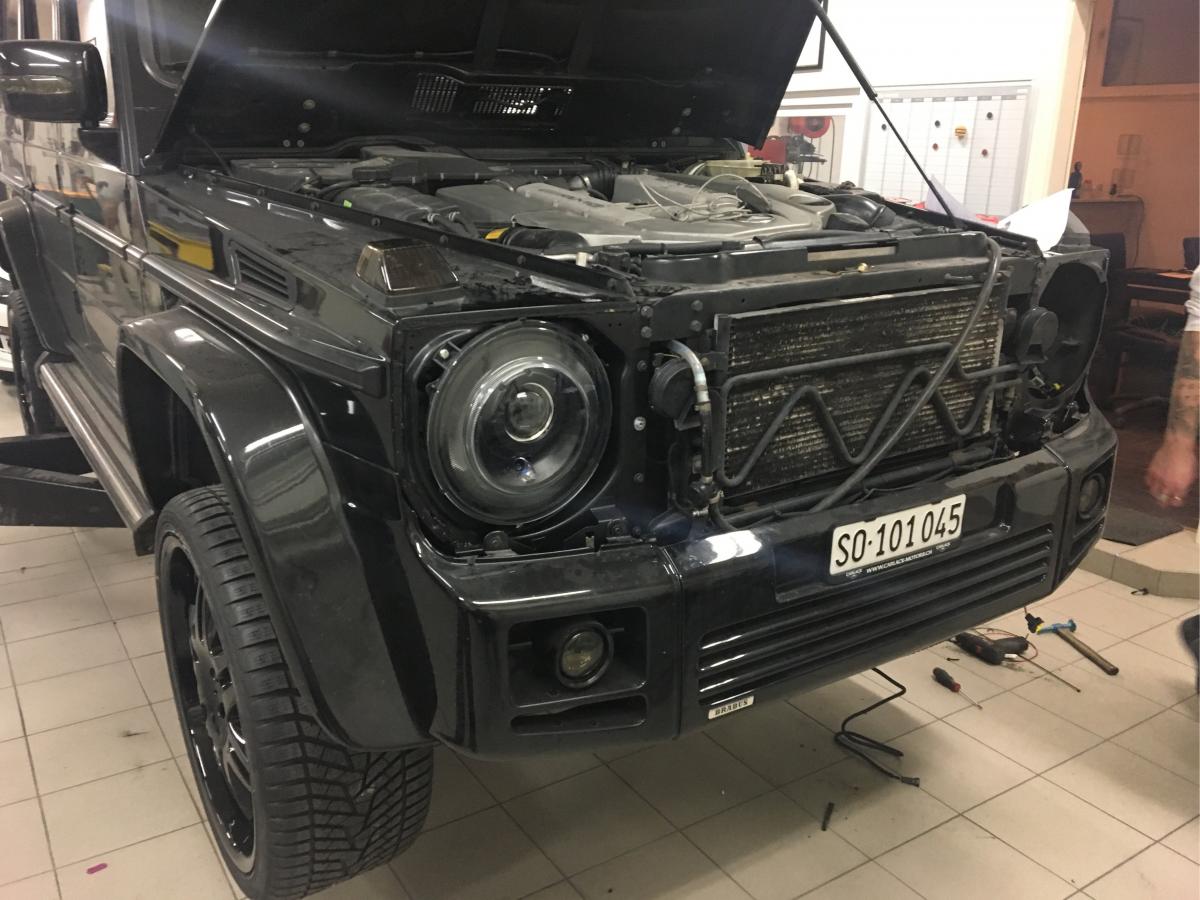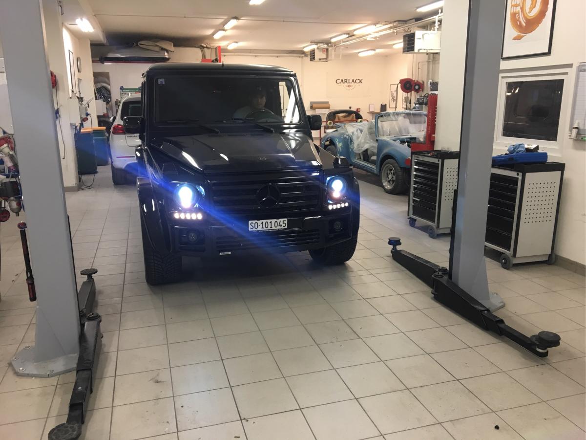 Der G63 oder G65 fiel recht schnell aus der Wahl, da ich einerseits nicht bereit war soviel Geld auszugeben für ein Spassauto, dass ich aufgrund des Komfort nicht für lange Fahrten nutzen würde und andererseits war mir klar das man dieses unbequeme, Benzinschluckende Gefährt nur hassen oder lieben kann. Dazu kommt, dass mir der G63 bereits "too much" ist, der G55 ist doch noch etwas purer. Also, lange Rede kurzer Sinn, ich fand ein Auto im Netz bei einem mir bekannten Händler und habe ihn aufgrund einiger Brabus-Gimmicks (und Vertrauen zum Händler) am Telefon gekauft.