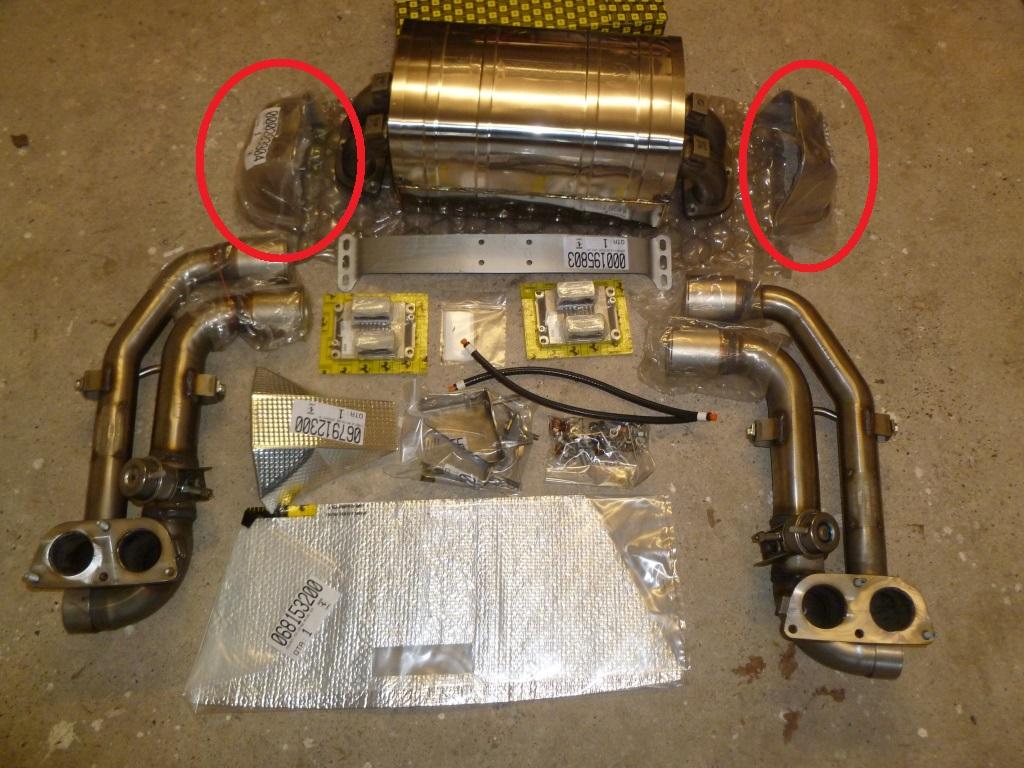 Natürlich haben sie andere Teilenummern, sie sind ja auch nicht ganz identisch. Sehen wir mal von den Endrohren ab (die sind in ihrer Form und Länge unterschiedlich), unterscheiden sich die Töpfe nur von diesen Kappen über den Ausgängen vom Topf. Habe ich im Bild rot eingereist. Die hat der 430er Topf nicht. Ansonsten ist es das komplett gleiche System. Bei offenen Klappen gehen die Abgase komplett am Schalldämpfer vorbei, quasi eine Straight Pipe hinten raus. :D Bei geschlossenen Klappen gehen die Abgase durch den Schalldämpfer, bei beiden Systemen. Sound ist somit identisch, vielleicht mit ganz leichten Abweichungen wegen der Endrohre....