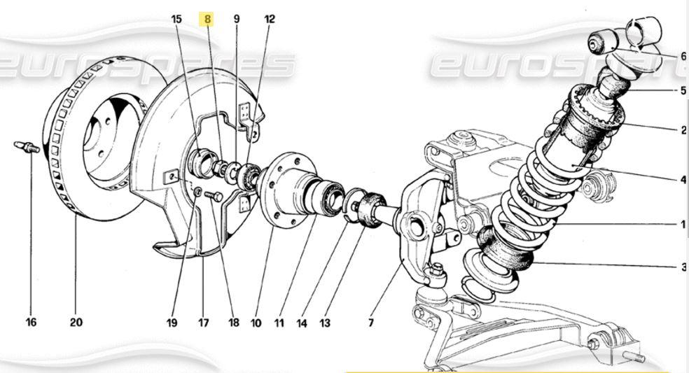 eine Minifrage für einen 308 GTSi US-Version. Kennt jemand das Anziehdrehmoment  für die Vorderachsmutter im Bild Nr. 8 ? Es ist wohl eine M18. Habe nur ein Workshop-Manual vom 308 QV, werde aber nicht schlau draus und möchte nicht das Lager abwürgen.